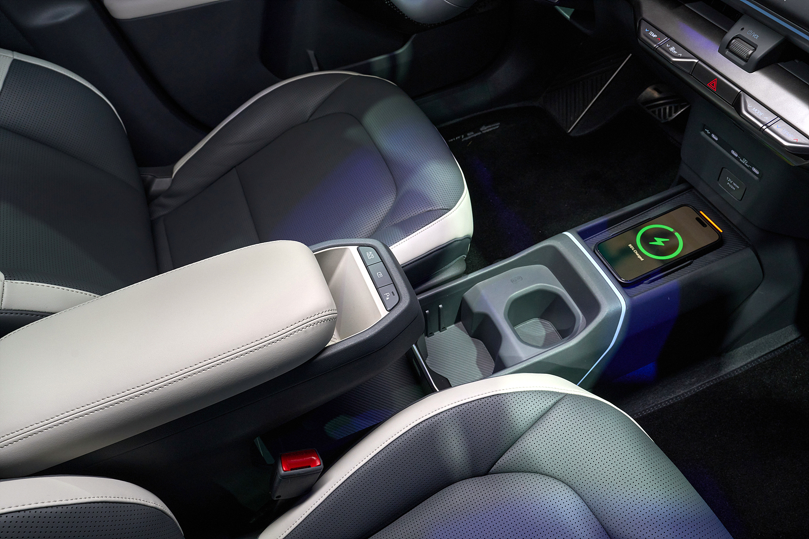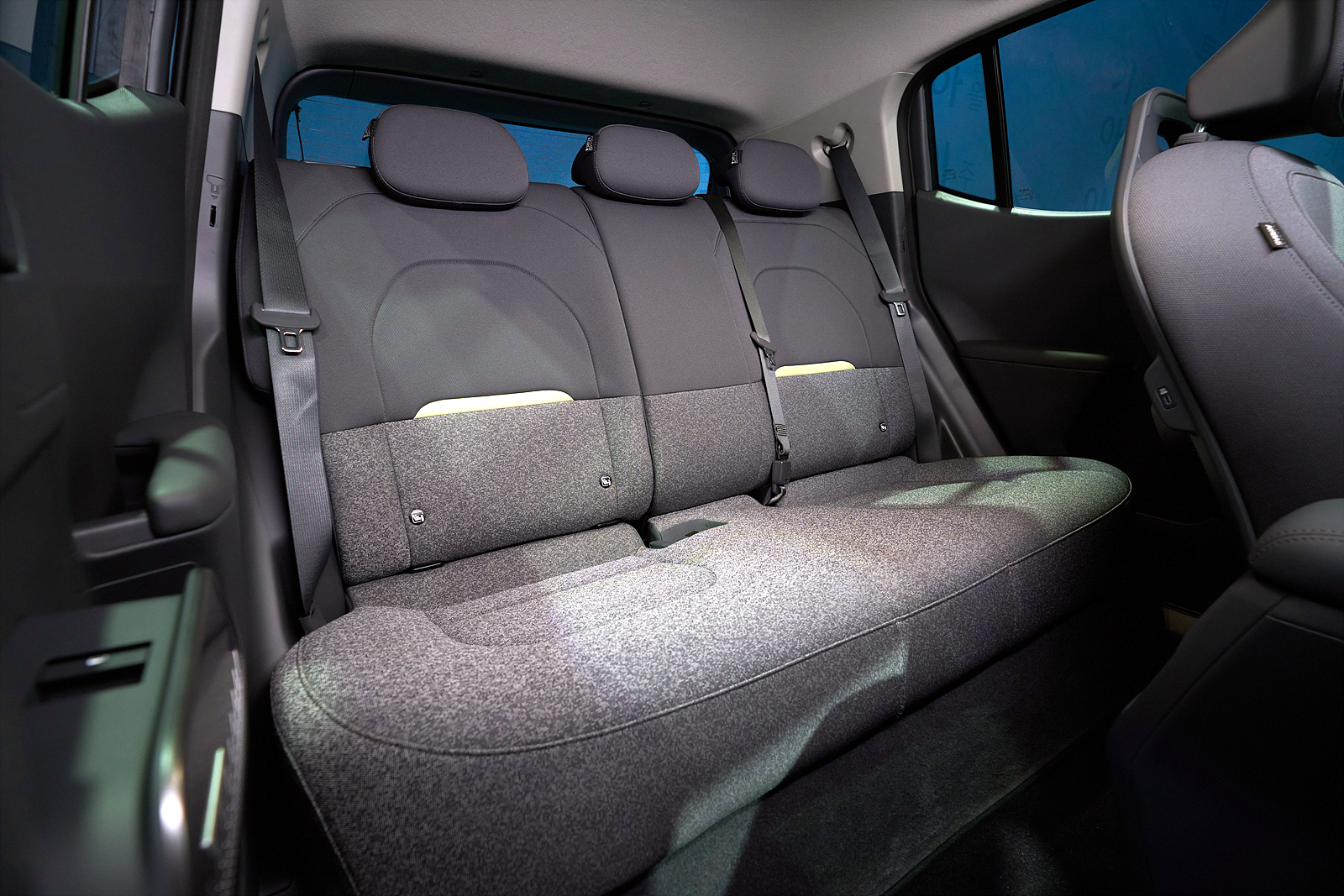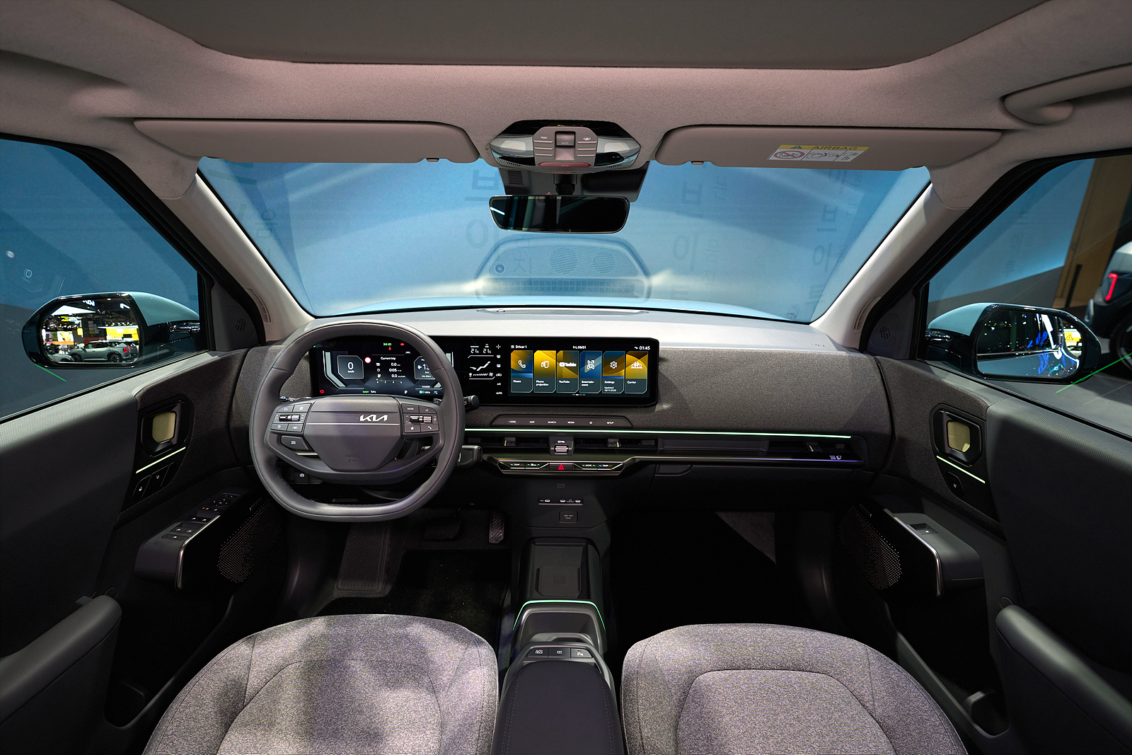 실내는 ‘피크닉 박스’ 콘셉트로, 패브릭 소재와 직관적인 디자인이 조화를 이룬다. 랩어라운드 대시보드가 탑승자를 감싸며 개방감과 아늑함을 동시에 제공한다. 앰비언트 라이팅과 친환경 소재가 현대적인 분위기를 강조한다.