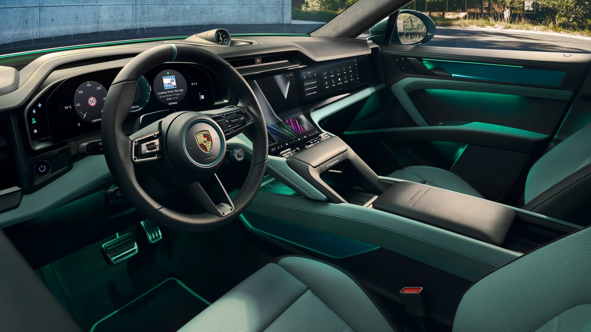 옵션 구성도 기본형과는 차별화된다. 포르쉐 액티브 라이드 서스펜션, 포르쉐 토크 벡터링 플러스 리미티드슬립 디퍼렌셜, 포르쉐 세라믹 컴포지트 브레이크(PCCB)를 선택할 수 있다. 터보의 전용 전면 범퍼나 리어 액티브 에어로 익스텐션은 없지만, 볼케이노 그레이 메탈릭 전용 프런트·리어 에이프런이 기본형과 외관을 구분한다. 전 트림 공통인 커브드 플로우 디스플레이와 최신 PCM 인포테인먼트는 당연히 포함이다.