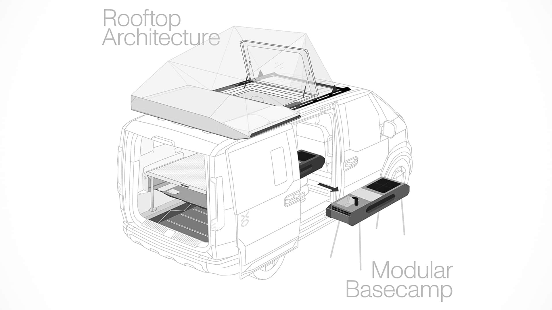 루프 설계는 이 차량의 핵심 요소다. 루프랙과 루프텐트, 대형 스카이라이트를 하나로 통합했다. 약 96×65cm 크기의 개구부를 통해 실내 채광을 확보하고, 동시에 내부에서 루프텐트로 직접 이동할 수 있도록 만들었다.
