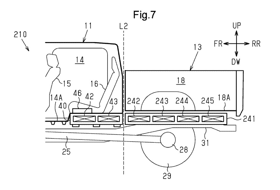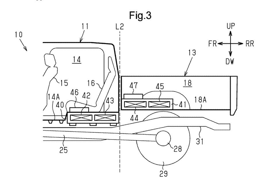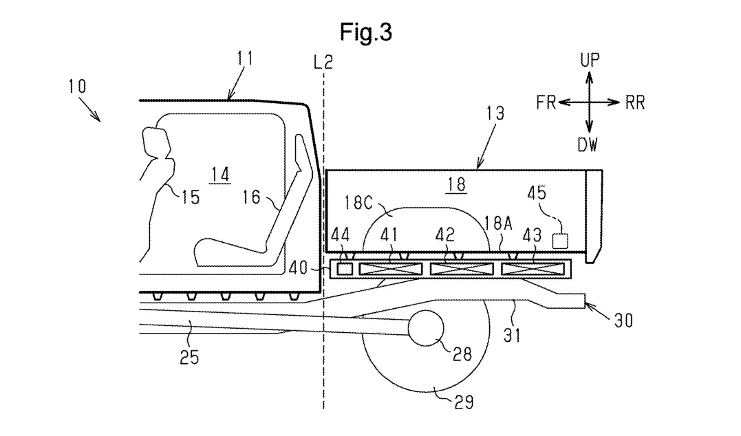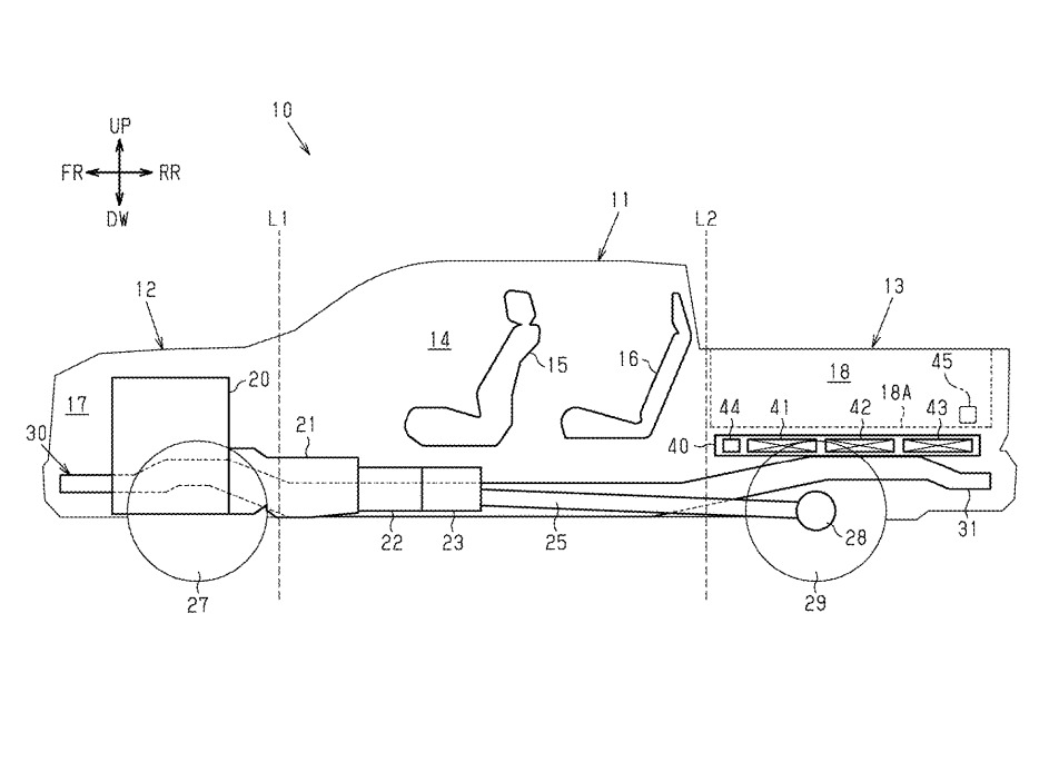 이번 특허가 풀려는 문제는 명확하다. 픽업트럭 하부는 엔진·변속기·드라이브샤프트·배기계·서스펜션이 공간을 나눠 쓴다. 승용차처럼 플로어 아래에 납작하게 배터리 팩을 깔 여지가 없다. 대용량 배터리를 넣으려면 구조를 다시 짜야 한다.